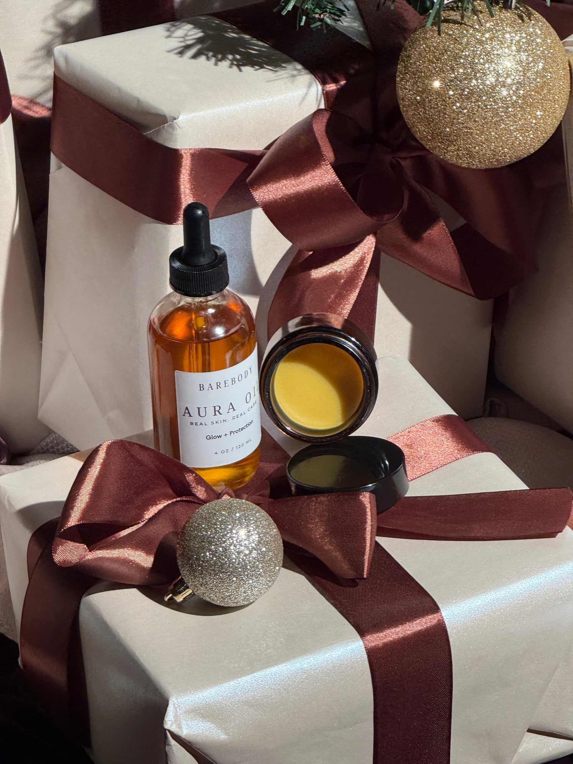 The Soft Set includes our full-size Hero Balm ($42) and full-size Aura Oil ($38) — hand-crafted in small batches to deeply nourish, restore, and soften the skin from head to toe.